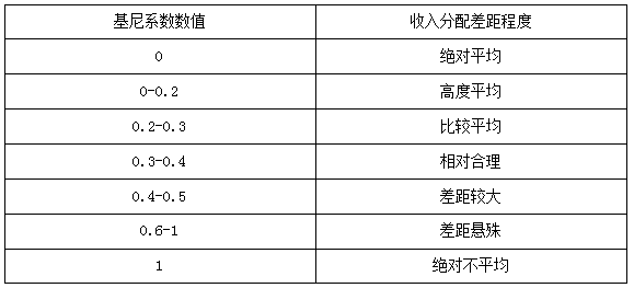 基尼系數(shù)是指國際上通用的、用以衡量一個國家或地區(qū)居民收入差距程度的常用指標。基尼系數(shù)是一個介于0-1之間的小數(shù),基尼系數(shù)越大,表示不平等程度越高?;嵯禂?shù)在不同區(qū)間,代表著不同的收入分配差距程度,下面,我們通過一個表格進行了解。