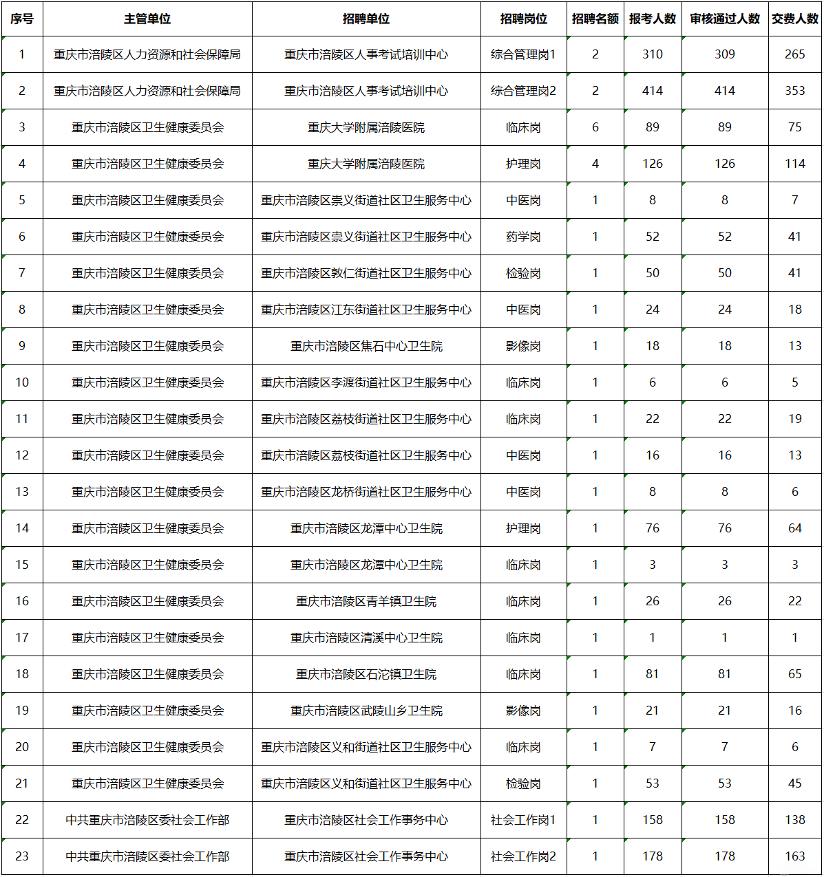 原標(biāo)題:重慶市涪陵區(qū)事業(yè)單位2025年第一季度考核招聘工作人員報(bào)考情況公布表