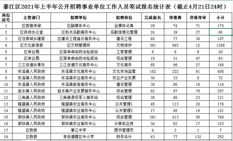 1.綦江區(qū)2021年上半年公開招聘事業(yè)單位工作人員筆試報名統(tǒng)計表(截止4月21日24時).xls