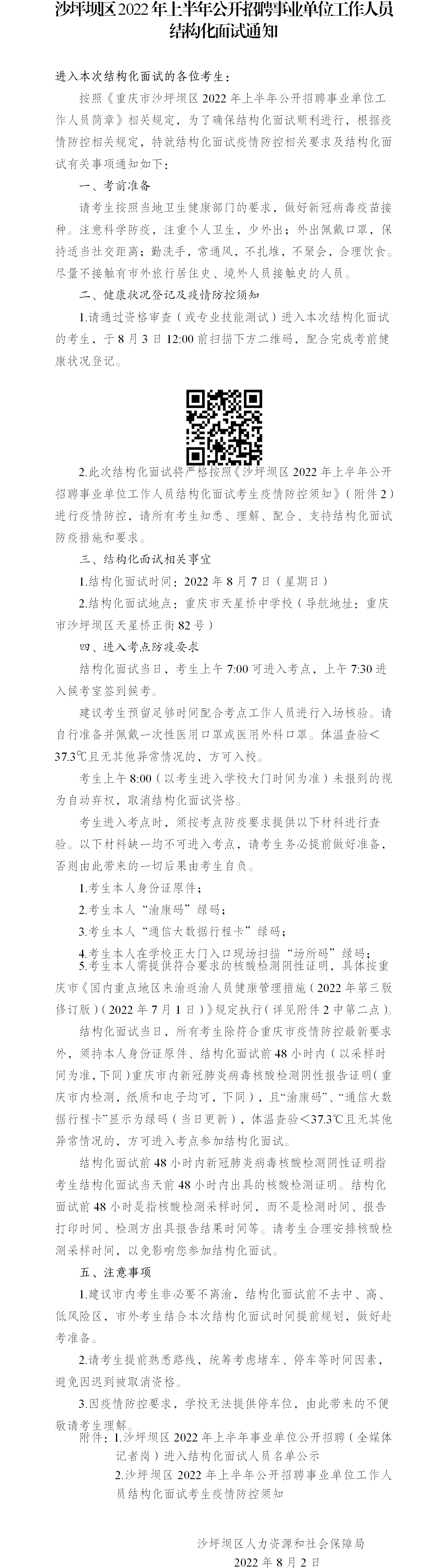 原標(biāo)題:沙坪壩區(qū)2022年上半年公開招聘事業(yè)單位工作人員結(jié)構(gòu)化面試通知