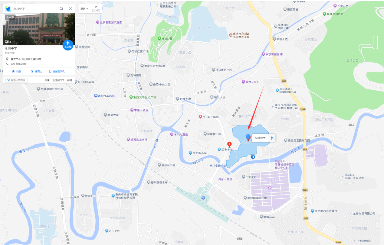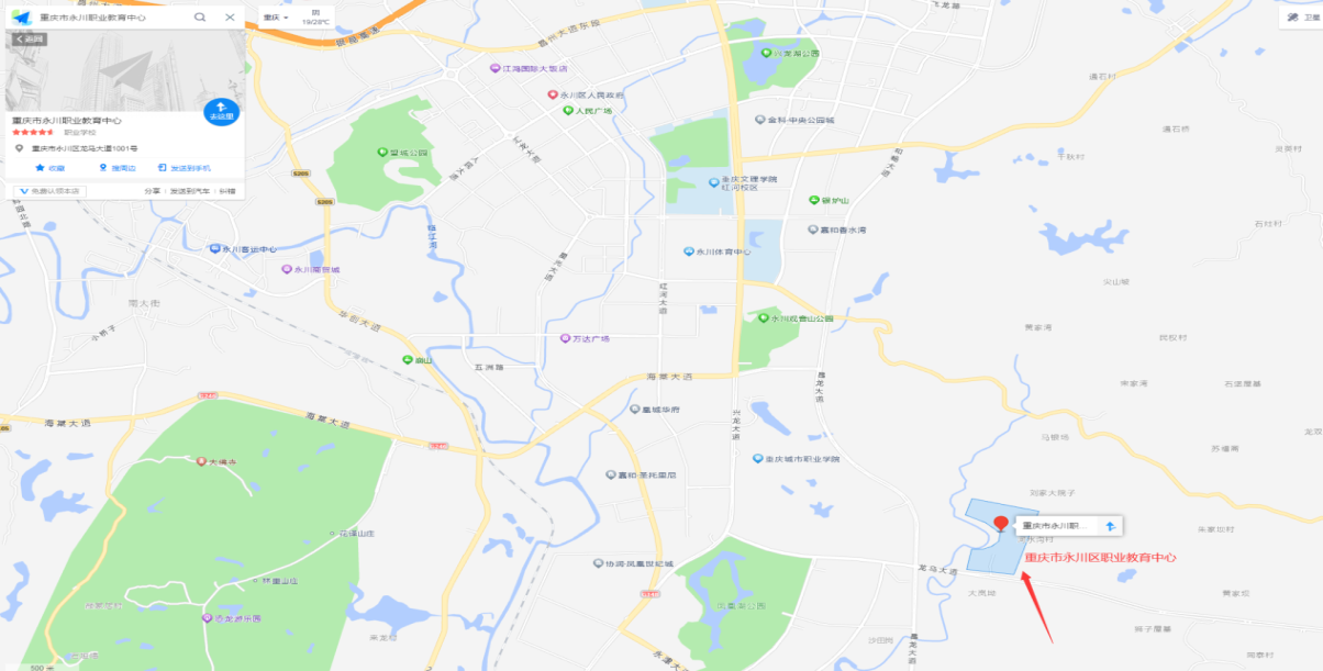(2)出租車或網(wǎng)約車:永川城區(qū)內(nèi)搭乘出租車或滴滴等網(wǎng)約車到“重慶市永川區(qū)職業(yè)教育中心”,費(fèi)用約13-30元;