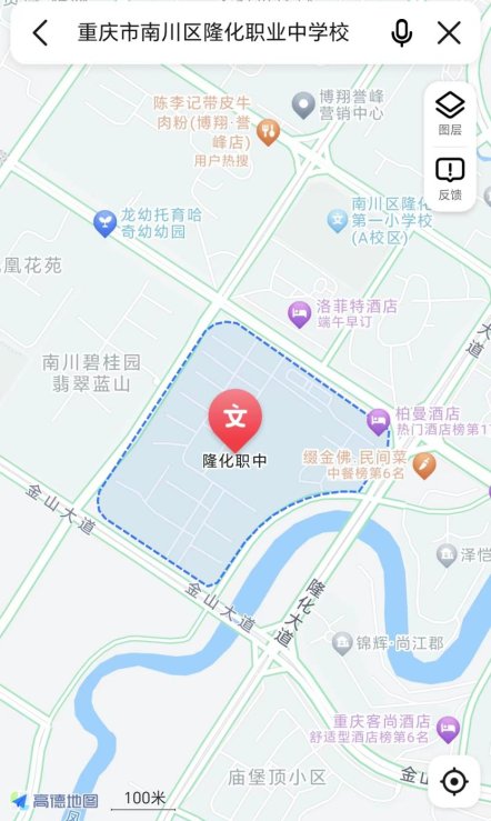 南川城區(qū)內(nèi)搭乘出租車或滴滴等網(wǎng)約車到“重慶市南川區(qū)南川中學(xué)初中部”或“重慶市南川區(qū)隆化職業(yè)中學(xué)校”。