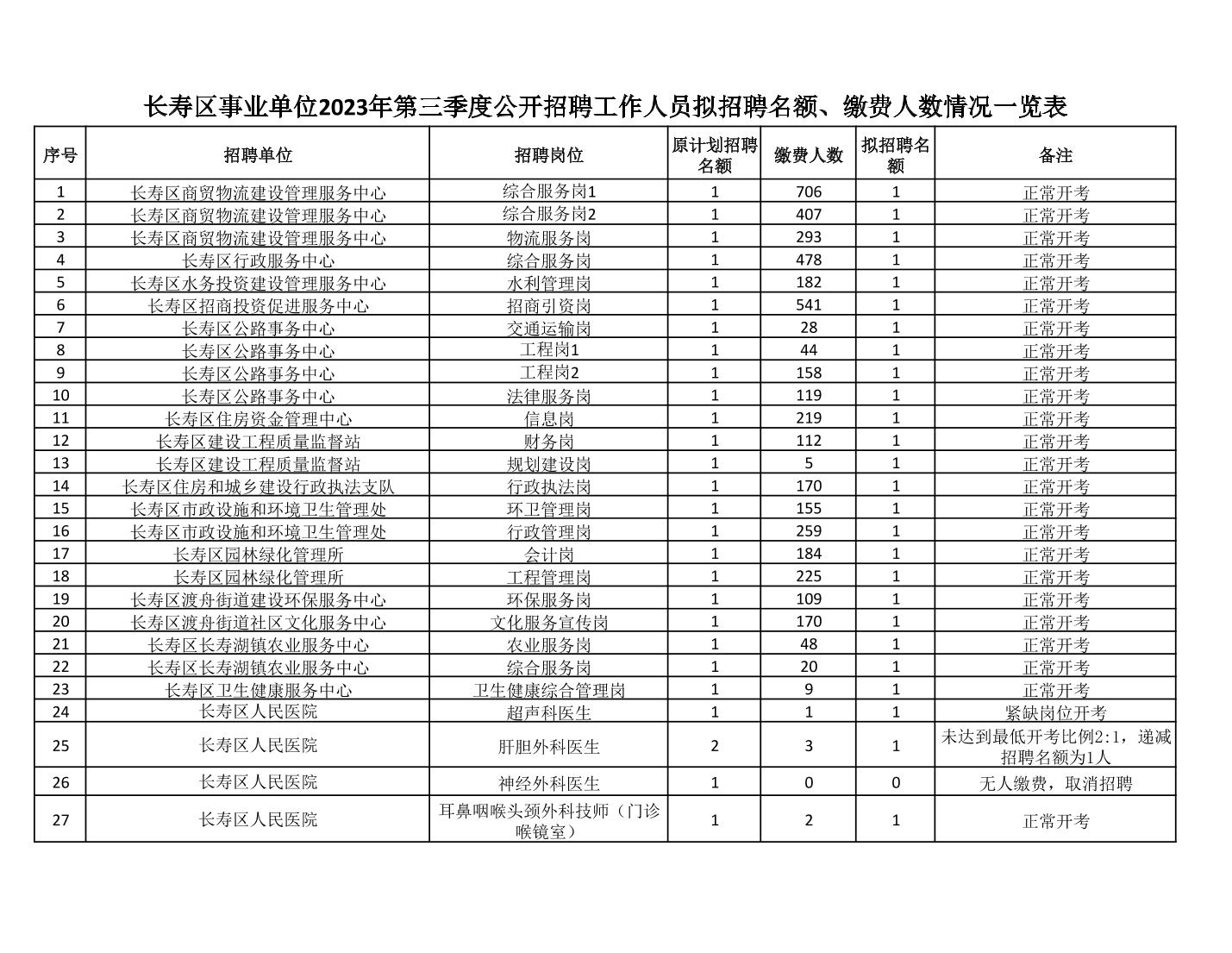 原標(biāo)題:長壽區(qū)事業(yè)單位2023年第三季度公開招聘工作人員擬招聘名額、繳費(fèi)人數(shù)情況一覽表