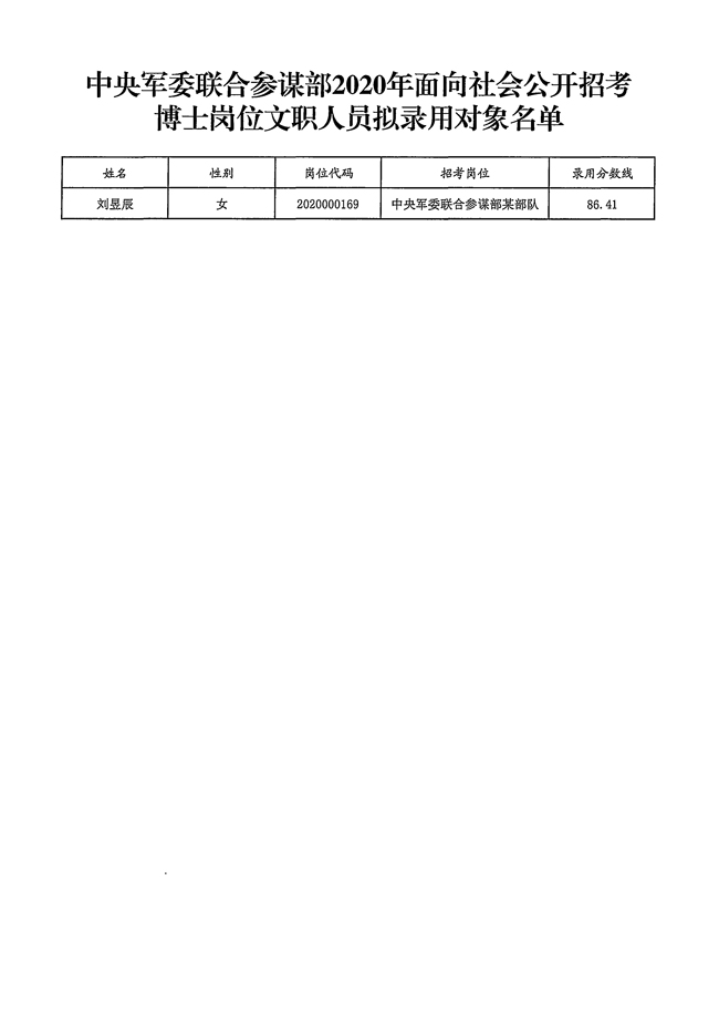 公示中央軍委聯(lián)合參謀部2020年面向社會(huì) 公開(kāi)招考博士崗位文職人員擬錄用對(duì)象名單