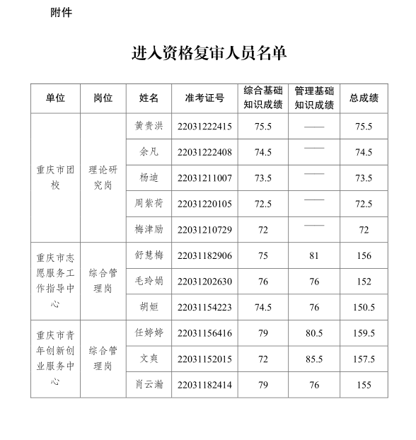 根據(jù)相關規(guī)定,現(xiàn)將共青團重慶市委2022年上半年重慶市屬事業(yè)單位集中公開招聘工作人員進入資格復審人員名單等相關情況予以公布。