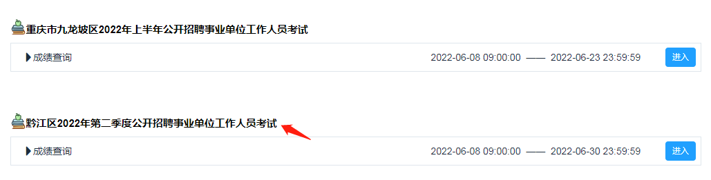 2022年上半年重慶市黔江區(qū)事業(yè)單位公開招聘考試成績查詢?nèi)肟?br /> 點擊進(jìn)入↓↓↓