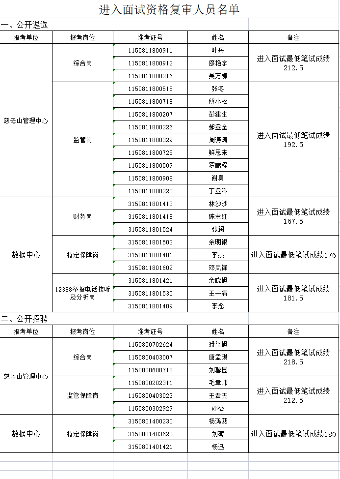 附件:進(jìn)入面試資格復(fù)審人員名單