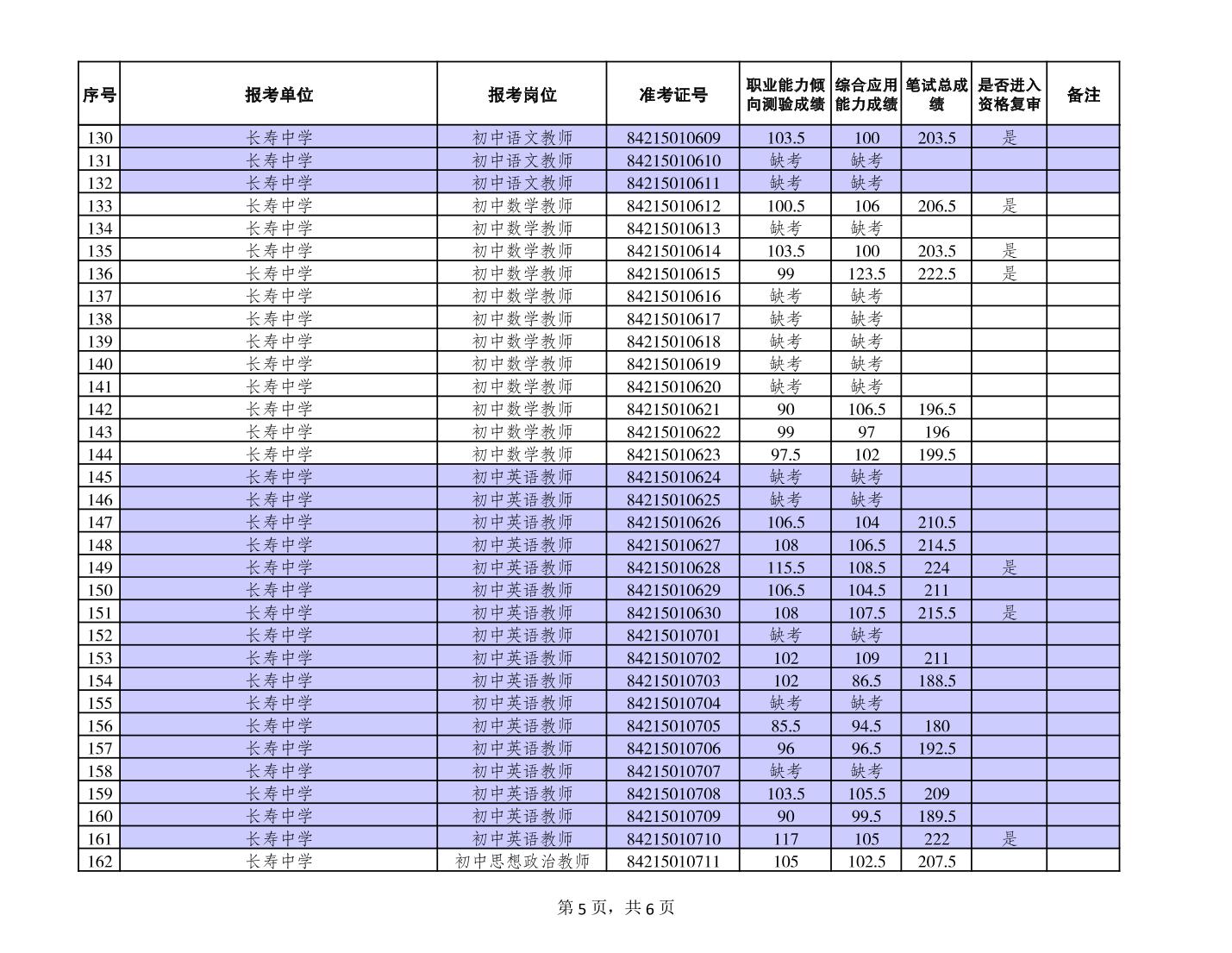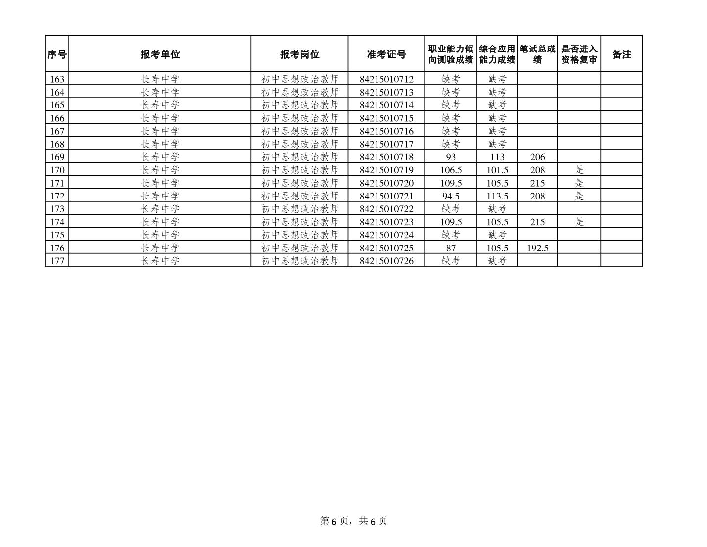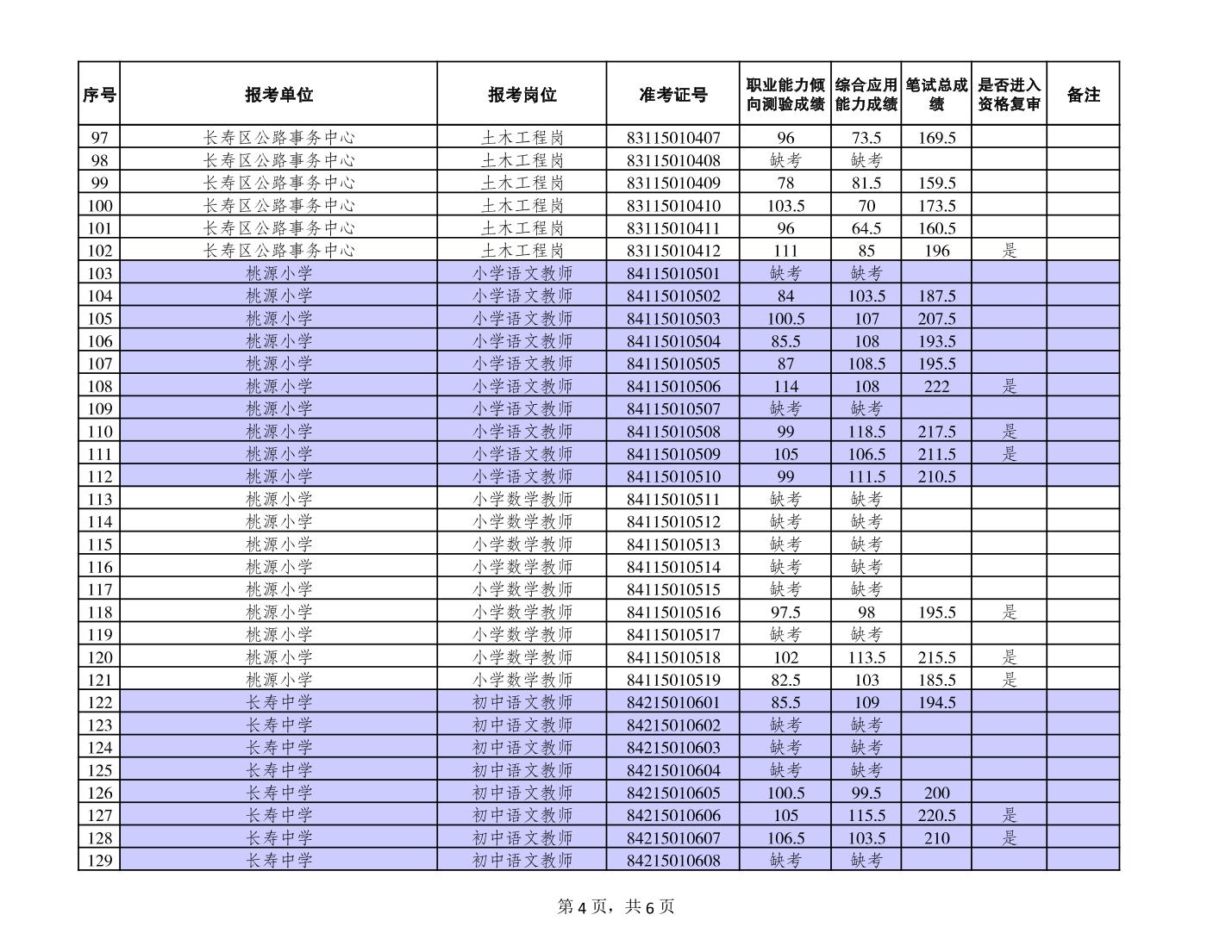 附件:長壽區(qū)事業(yè)單位2023年第二季度考核招聘緊缺優(yōu)秀人才筆試成績公布和進入資格復審人員名單