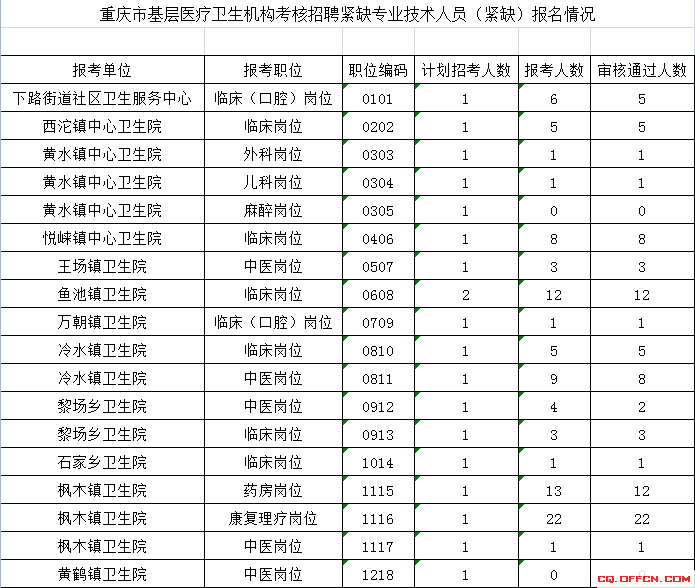 報考《2020年重慶市基層醫(yī)療衛(wèi)生機構考核招聘屬地化醫(yī)學類專業(yè)高校畢業(yè)生公告》的崗位,據筆試總成績從高分到低分按照1:2比例確定面試人選,若最后一名面試人選成績出現并列,則并列進入面試。