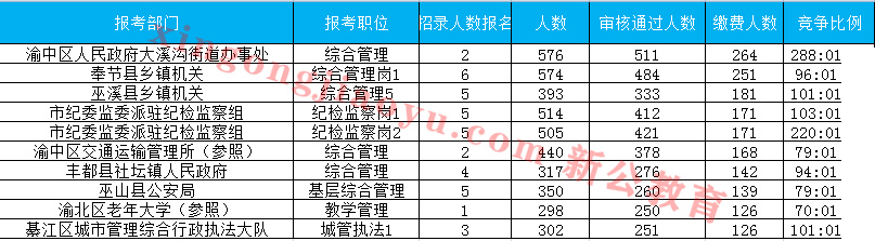 2019重慶公務(wù)員考試報(bào)名人數(shù)統(tǒng)計(jì):過(guò)審前十崗位【截至27日14時(shí)】