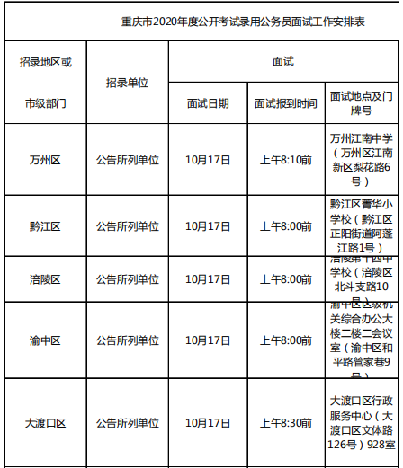2021年面試地點(diǎn)尚未公布!以下地點(diǎn)為2020重慶省考的地點(diǎn)供大家參考!
