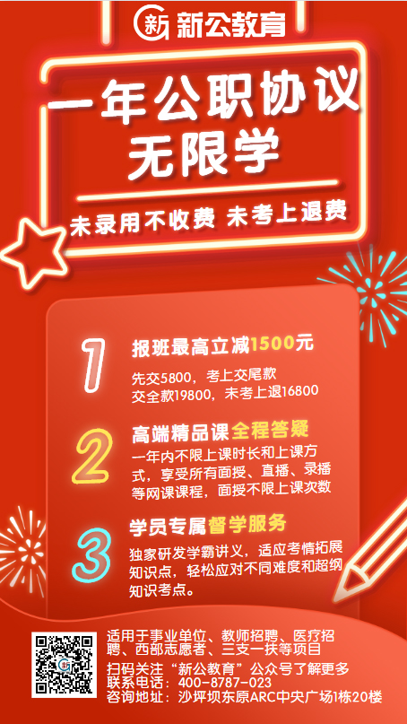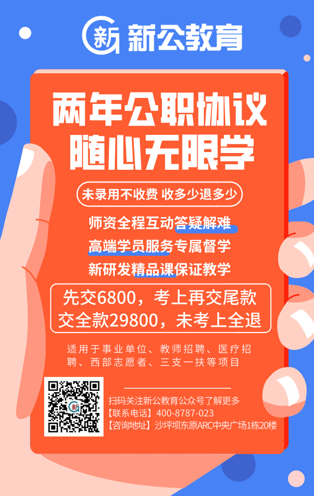 新公教育為你提供更多考試資訊和招聘公告可關(guān)注微信公眾號(hào)【新公教育(cqxgjy)】查看!