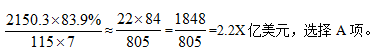 對(duì)外承包工程新簽合同額在5000萬(wàn)美元以上的項(xiàng)目有115個(gè),占新簽合同總額的83.9%。結(jié)合題目假設(shè)條件可知,所求為