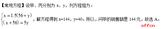 例1.某公司三名銷售人員2011年的銷售業(yè)績?nèi)缦拢杭椎匿N售額是乙和丙銷售額的1.5倍,甲和乙的銷售額是丙的銷售額的5倍,已知乙的銷售額是56萬元,問甲的銷售額是:
